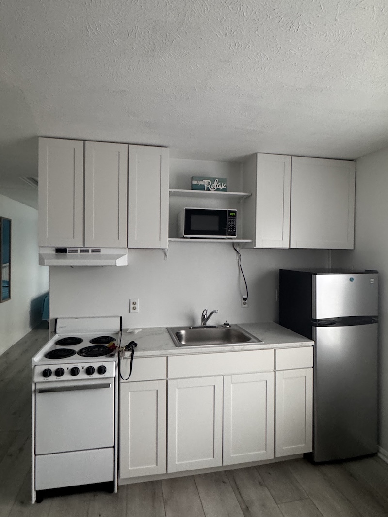 Rooms with kitchens $160 a night for two people. Each additional person is $10. (maximum of four in room)